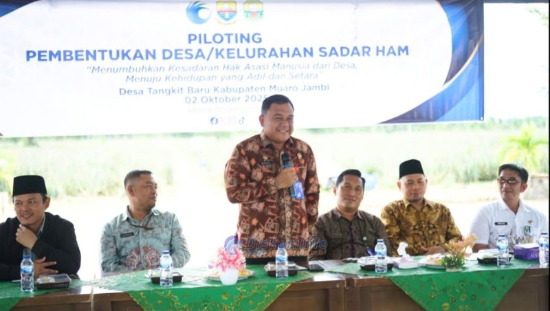 LINTASMUAROJAMBI.COM – SENGETI – Sekretaris Daerah (Sekda) Kabupaten Muaro Jambi, H. Budhi Hartono, mewakili Bupati Muaro Jambi, menghadiri kegiatan penandatanganan komitmen Desa Sadar Hak Asasi Manusia (HAM) yang berlangsung di Pendopo Agrowisata, Desa Tangkit Baru, Kecamatan Sungai Gelam, Kamis (2/10/2025).
