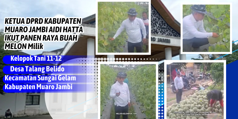 LINTASMUAROJAMBI.COM - SENGETI – Ketua DPRD Kabupaten Muaro Jambi, Aidi Hatta, menghadiri sekaligus ikut serta dalam kegiatan Panen Raya Buah Melon yang digelar oleh Kelompok Tani (Poktan) 11 dan 12 di Desa Talang Belido, Kecamatan Sungai Gelam, Kabupaten Muaro Jambi.